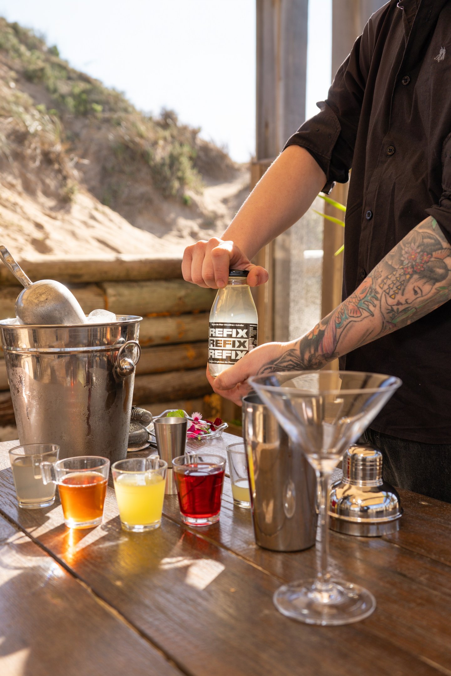 Para isso chamamos o Barista Jeff Baccas para desenvolver do zero uma série de Drinks não alcoólicos feitos à partir do isotônico REFIX em seus diversos sabores. Após algumas semanas de testes, chegamos a 12 receitas realmente boas.